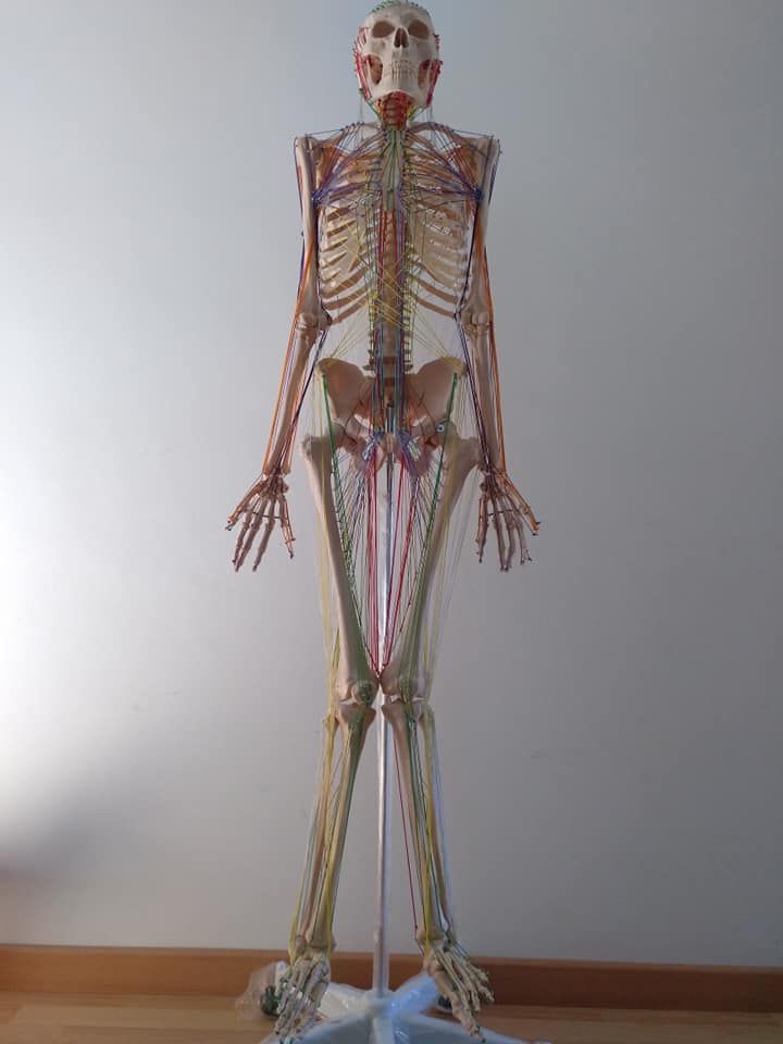 Este modelo se lleva usando años en enseñanza en hospitales, escuelas, universidades y laboratorios. Y ahora además se añade el extra de las cadenas miofasciales. Con un tamaño natural de 170cm y un peso de 7,6 kg.