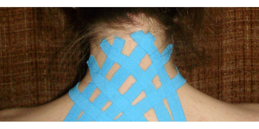 En realidad se trata de un tratamiento de vendaje neuromuscular más conocido como KINESIOTAPE, para tratar lesiones y dolores musculares. No te preocupes si no lo conocías puesto que se puso de moda en España tan solo unos años.
